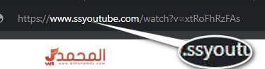 • في رابط الفيديو ضع SS قبل Youtube كما بالصورة، ثم اضغط Enter